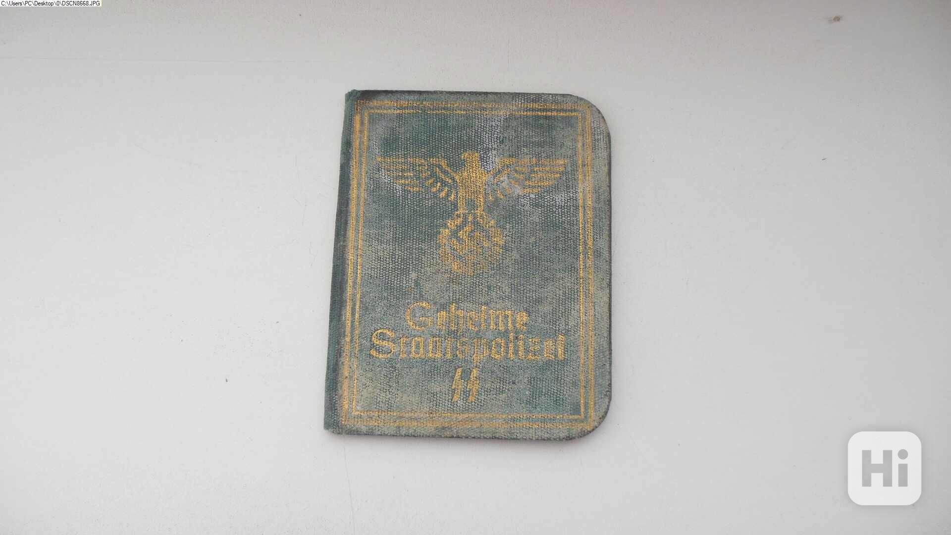 Průkaz SS, tajná státní policie, sledujte i mé ostatní nabídky, platí do smazání inzerátu. Žádná propagace, slouží pouze pro sběratelské účely.